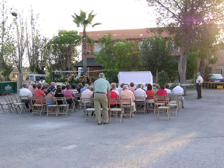 El día grande es el domingo, cuando tiene lugar la romería por parajes cercanos a la Rambla Salada. La imagen sale engalanada de una casa situada en la zona, vecinos y visitantes esperan el momento desayunando churros con chocolate.