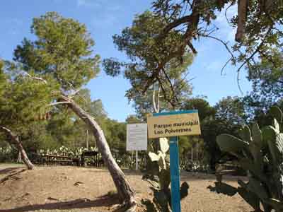 El paisaje del Parque Natural de Los Polvorines está dominado por pinares de pino carrasco y enclaves con formaciones de paleras de higos chumbos. Bajo el pinar se encuentran arbustos de lentisco y coscoja y madreselvas, abundantes en las zonas de umbría.