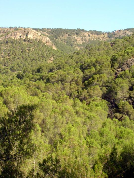 La Sierra de Carrascoy pertenecen al complejo bético y en su territorio abundan las coníferas y el monte bajo, así como algunas especies de cultivo de secano, como los olivos. Pinos carrascos y cipreses son los árboles silvestres más comunes, además de ejemplos esporádicos de palmeras o adelfas.