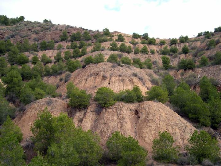 Este relieve posee un peculiar biotopo, caracterizado por una vegetación gipsícola ibérica de tomillares y espartales. Se dejan ver también galerías de matorral de ribera tardomediterránea, así como ejemplos de sabinas mesomediterráneas y pastizales de gramíneas.