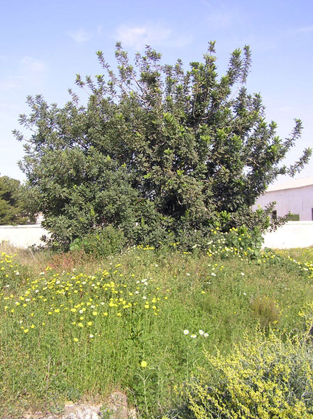 Además de los árboles de cultivo se dan numerosos ejemplos de algarrobos y coníferas, pinos halepensis o cipreses.
