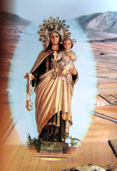 El día grande, dedicado a la patrona, se celebra una misa mayor con ofrenda de flores que suele ser cantada por algún coro de poblaciones vecinas o de la capital. Durante la noche una solemne procesión recorre las calles del pueblo con la imagen de la patrona y con la del Sagrado Corazón de Jesús. Y, como no puede ser de otra forma, un gran castillo de fuegos de artificio y una mascletá ponen punto y final a las fiestas.