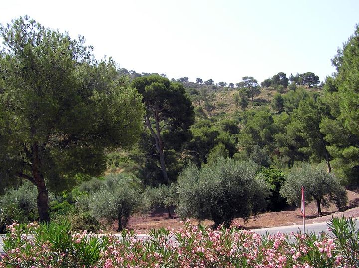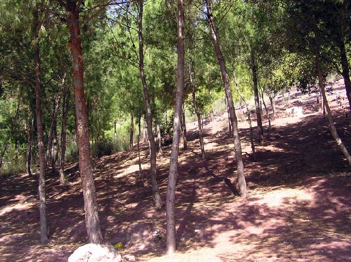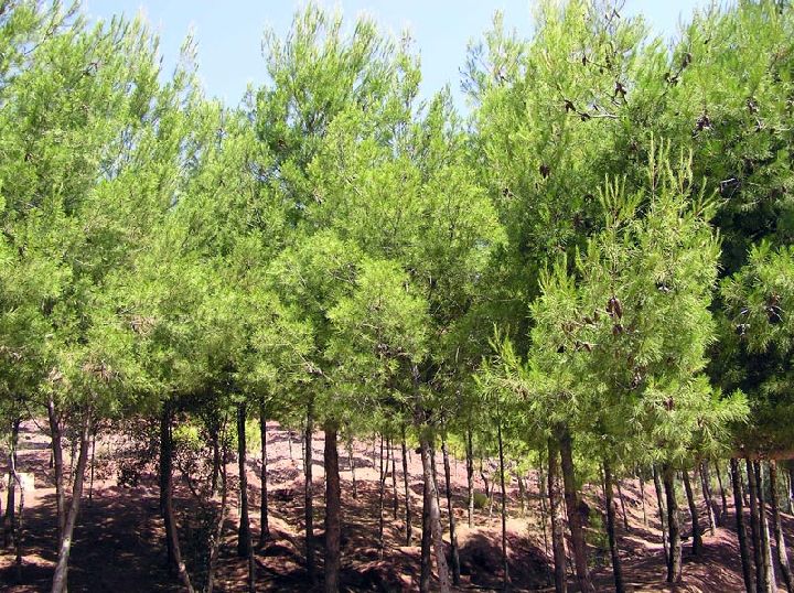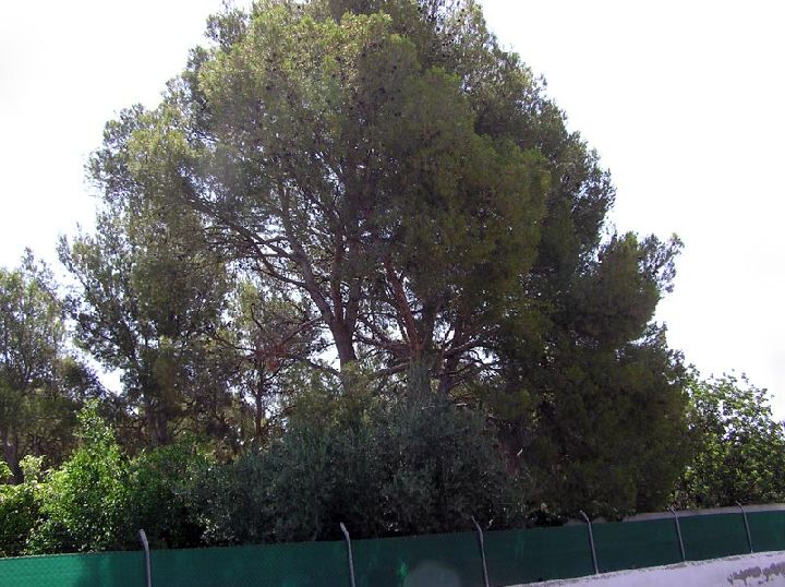 Pero además de los árboles de fruto también hay numerosos ejemplos de coníferas, pinos carrascos, pinos piñoneros y cipreses, estos últimos formando muros de ornamentación que esconden los patios de las fincas o los cultivos.