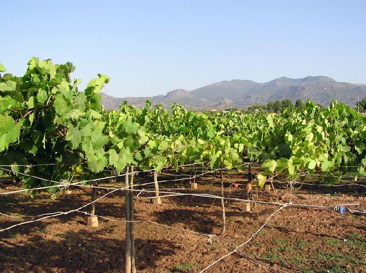 Además de los cultivos de uva blanca y la vegetación de matorral asociada, predomina un arbolado, en ocasiones denso, compuesto por frutales de regadío, generalmente cítricos, y cultivos de secano, principalmente olivo y ejemplares de algarrobo, higuera y parras. Aún hoy algunas fincas conservan canalizaciones abiertas muy similares a las de la huerta murciana.