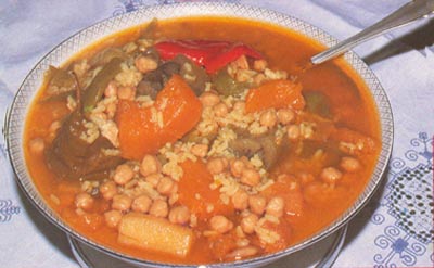 Tomates, berenjenas, judías verdes, alcachofas, acelgas, pimientos, melocotones, olivas, limones, naranjas y albaricoques son algunos de los productos de huerta consumidos.