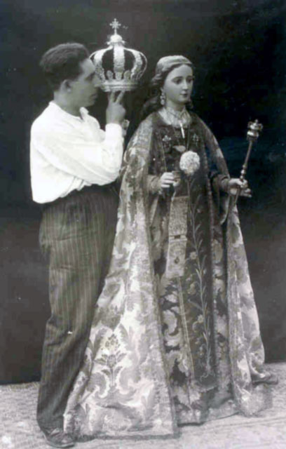 Juan el del Carmen, colocándole la corona a la Virgen. Año 1920.