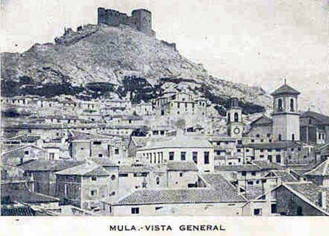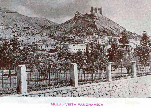 Vista de Mula desde la carretera de Pliego, en los años 50.