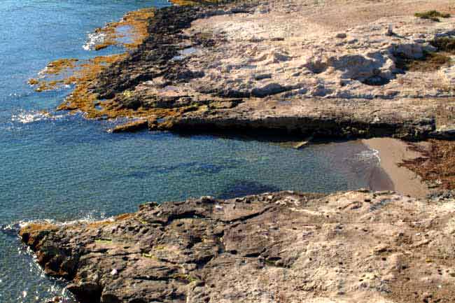 Entre los claros arenosos de las rocas y las paredes de los acantilados existen grandes paredes de Posidonia oceanica. Las corrientes marinas que aquí confluyen han dotado a la zona de numerosas especies subacuáticas que se extienden a través de las distintas cuevas que se pueden visitar buceando.