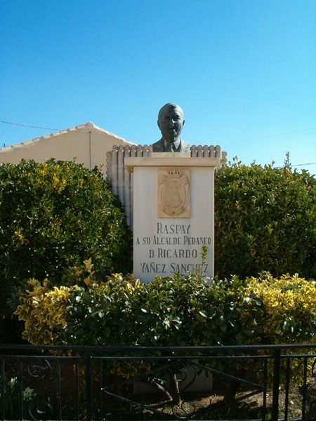 Durante toda su vida se dedicó a la agricultura como mediero en la Finca “Casa Nueva”, compaginando con el trabajo en el campo su otra pasión, la política. Fue alcalde pedáneo durante 28 años, concretamente desde 1947 hasta 1975, año en el que falleció. El agua potable, el teléfono, la pavimentación de las calles y accesos a la pedanía, la luz eléctrica y el alcantarillado llegaron a Raspay durante su mandato.
