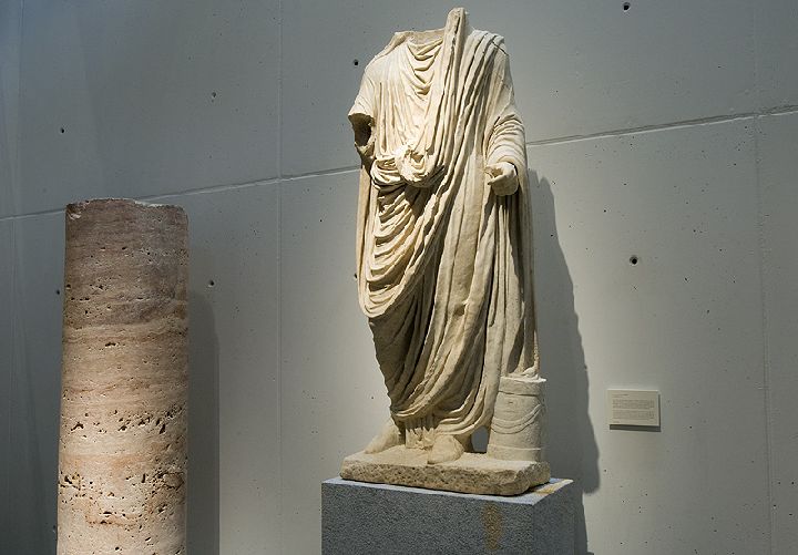 Durante el Gobierno de Augusto se rompe definitivamente con la estructura republicana y se inicia el Imperio. El Alto Imperio Romano coincide en Cartagena con una expansión de las construcciones públicas y el dinamismo de la vida urbana, ya que el emperador se sirve de las grandes edificaciones para propagar el esplendor de su dinastía. A finales del siglo I, Cartagena asistió a un gran desarrollo arquitectónico y urbanístico. La zona situada entre el Cerro del Molinete y el Monte de la Concepción había permanecido deshabitada en época púnica y tardorrepublicana, pero ahora asiste a una remodelación urbana, en la que también queda patente el esquema de monumentalización promovido por Augusto. Una de las realizaciones que mejor reflejan el ambiente político y cultural que se respiraba en la Carthago Nova Alto Imperial fue el teatro, situado en la ladera occidental del Monte de la Concepción y caracterizado por la perfección en la ejecución de su proyecto arquitectónico, la calidad y cantidad de sus elementos ornamentales, y por su completo programa epigráfico, que permite fijar la fecha de construcción del edificio en el siglo I a.C.