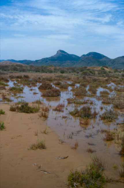 En los lechos menos pedregosos aparecen formaciones de carrizos, juncos y algún pie asilvestrado de higuera. Es frecuente la aparición de especies exóticas invasoras como el gandul.