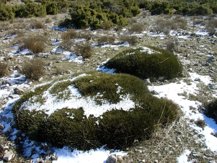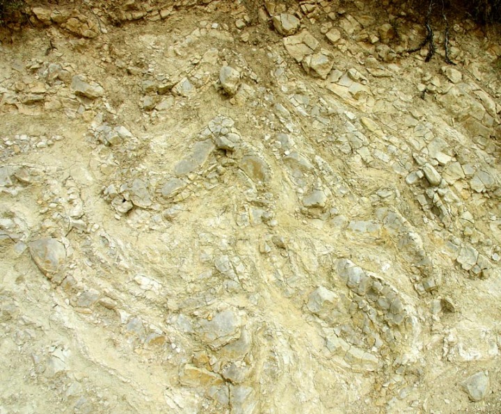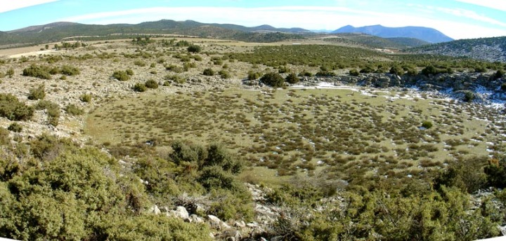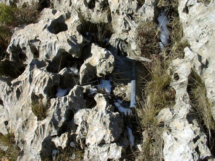 El incremento de la aridez y posiblemente la acción de los primeros pobladores de la zona condicionaron posteriormente la pérdida de gran parte de la cubierta vegetal y la erosión del suelo, por lo que se produjo la exhumación del lapiaz oqueroso y el desarrollo sobre éste de un lapiaz estructual en surcos (figura 4), generándose así el lapiaz actual (karst exhumado complejo o mixto).