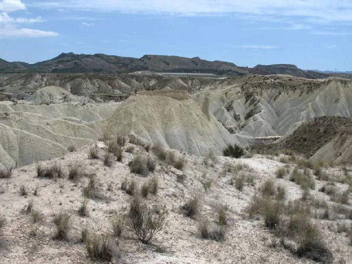 Dan lugar a los paisajes de barrancos típicos de las zonas semiáridas y áridas que caracterizan al sureste español: los bad lands (tierras malas), que tradicionalmente han sido despreciados por el hombre, pero que en las últimas décadas han sido revalorizados como zonas de interés paisajístico, geológico, botánico y faunístico, por lo que en muchas zonas del mundo han llegado a catalogarlos como parques naturales e incluso nacionales. Desde este punto de vista destacan: el paisaje de Gebas, el paisaje lunar de la Sierra de Carrascoy y las depresiones de Fortuna-Abanilla-Molina de Segura, de Mula-Albudeite-Campos del Río, Ricote y de Lorca.