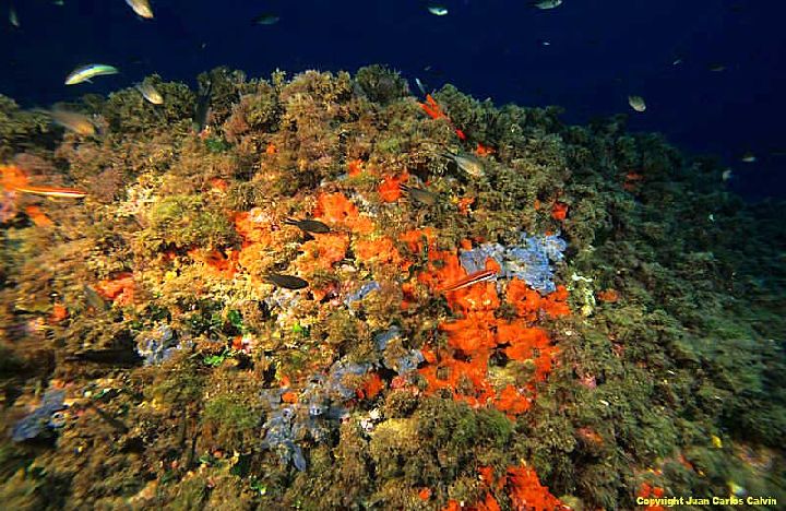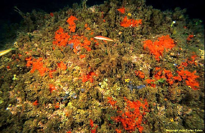Esponjas: Clathrina coriacea, Sycon raphanus, Cliona celata, Chondrosia reniformis, Crambe crambe, Phorbas tenacior, Petrosia ficiformis, Dysidea avara.