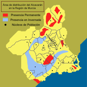 En Murcia puede verse al alcaraván desde las dunas litorales hasta el interior, en eriales, barbechos, cultivos herbáceos de secano, matorral, y, en general, en zonas llanas con escasa vegetación, dispersa y de porte bajo. Esta descripción coincide con amplias zonas de la geografía regional: saladares del Guadalentín, marinas y llanuras litorales de Cartagena, Lorca, Mazarrón y Águilas, zonas esteparias del Altiplano, Tornajuelo, Cagitán, Almendricos, Rambla Salada, Ajauque...