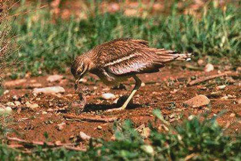 El alcaraván se alimenta principalmente de invertebrados (ortópteros, coleópteros, caracoles, miriápodos...), incluyendo a veces su dieta pequeños vertebrados (ratones, topillos...), por lo que resulta un gran aliado para los agricultores.