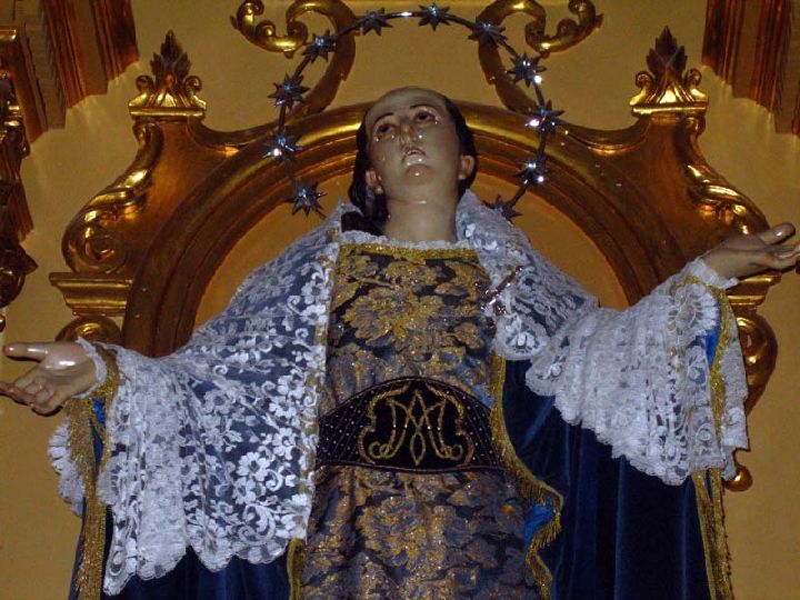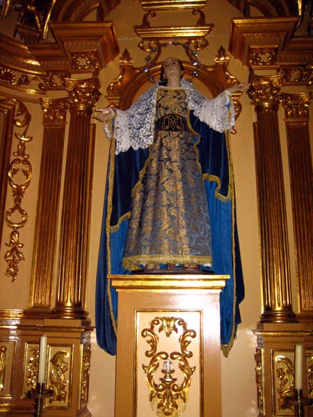 Es una imagen colocada de frente. Muestra el esquema compositivo que introdujo Francisco Salzillo para esta advocación. Por tanto, se representa con los brazos abiertos y la faz vuelta al cielo con la cabeza ligeramente vuelta hacia atrás y hacia el lado derecho.