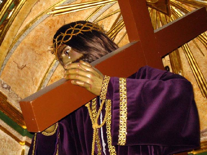 Se trata de la escultura de Jesús nazareno camino del Calvario. El rostro es sereno y de gran belleza. La boca apenas entreabierta, es el único rasgo junto con la sangre pintada que muestra el dramatismo del momento.