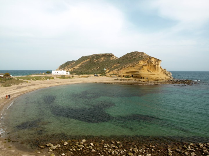 Esta última cala marca el límite provincial con Almería, perfectamente a cubierto del Levante y en cuya fachada marítima acantilada de formación arenisca aparecen aún visitables las cuevas de los cocedores de esparto y pescadores de la zona que realizaron las mismas labores durante siglos y desde época romana.